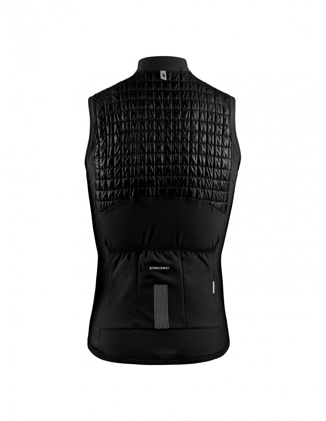 El chaleco cuenta con una cremallera de doble carro que permite su apertura bien sea por arriba o por abajo durante la ruta, facilitando la libertad de movimientos en una ascensión, regulando la temperatura interior o accediendo con mayor facilidad a los bolsillos de la chaqueta o maillot. Para mejorar la visibilidad del ciclista, con la llegada de días más cortos y menos luz solar, se añade una banda reflectante trasera situada en la zona de mayor visibilidad.