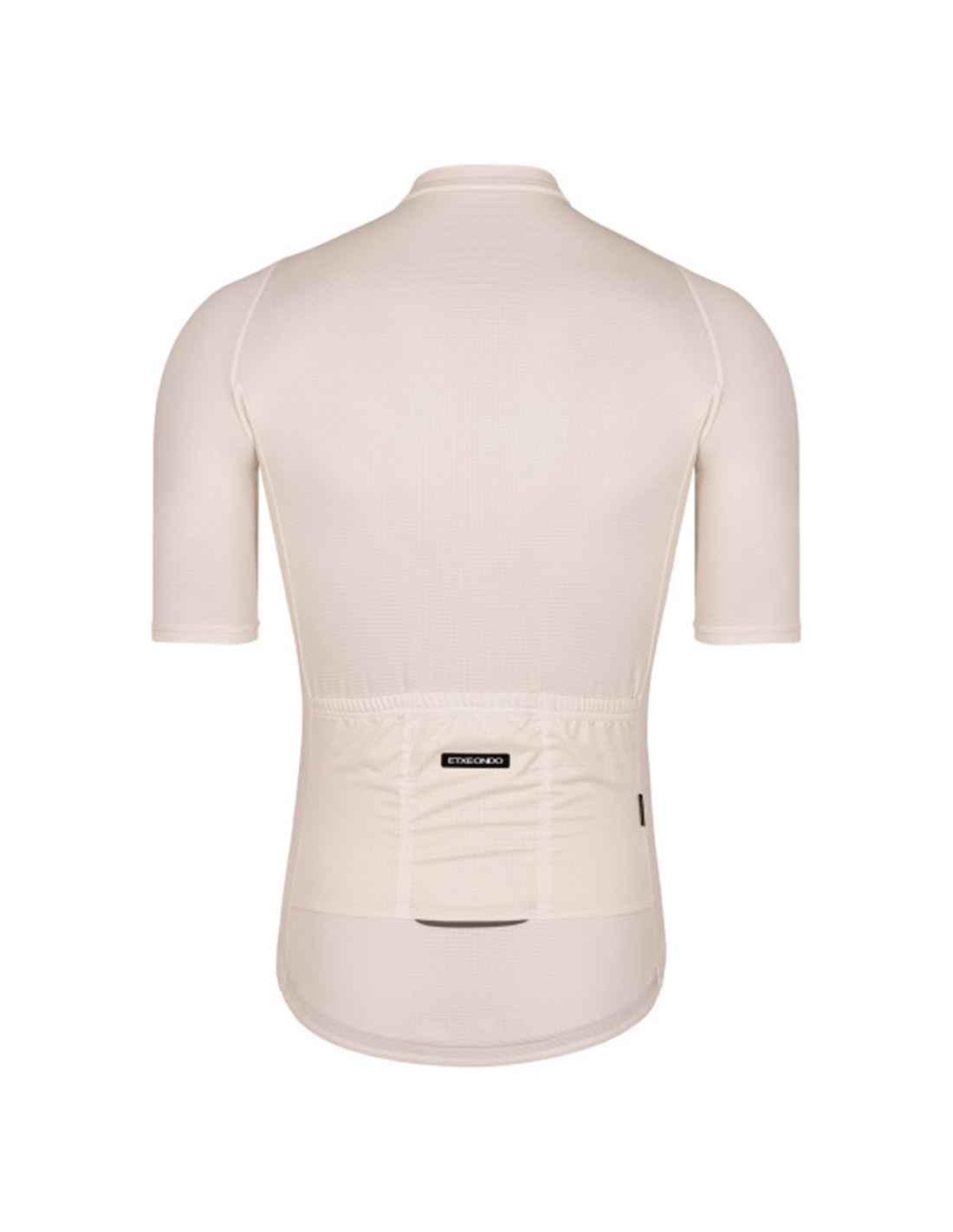 El cuello está terminado con una funda de costura personalizada, que mejora la estética y la durabilidad a largo plazo, con una pretina antideslizante que mantiene la camiseta en su posición kilómetro tras kilómetro.
