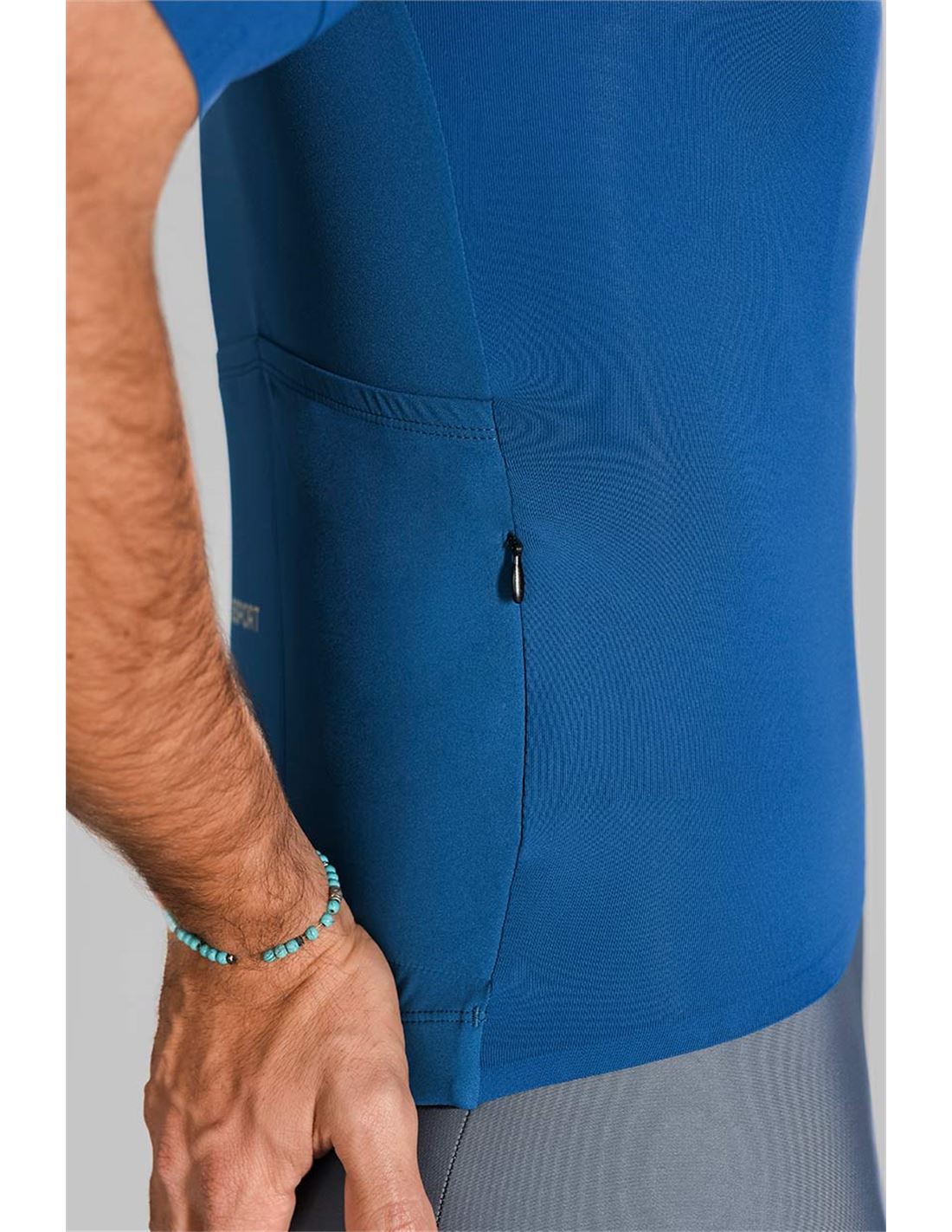 Una prenda de estructura simple, confeccionado con colores sólidos. Un patrón más regular y menos ajustado, pero suficientemente aerodinámico. Terminación Bonding en la cintura y goma elástica siliconada en la parte de la espalda, para fijar el maillot en su posición.